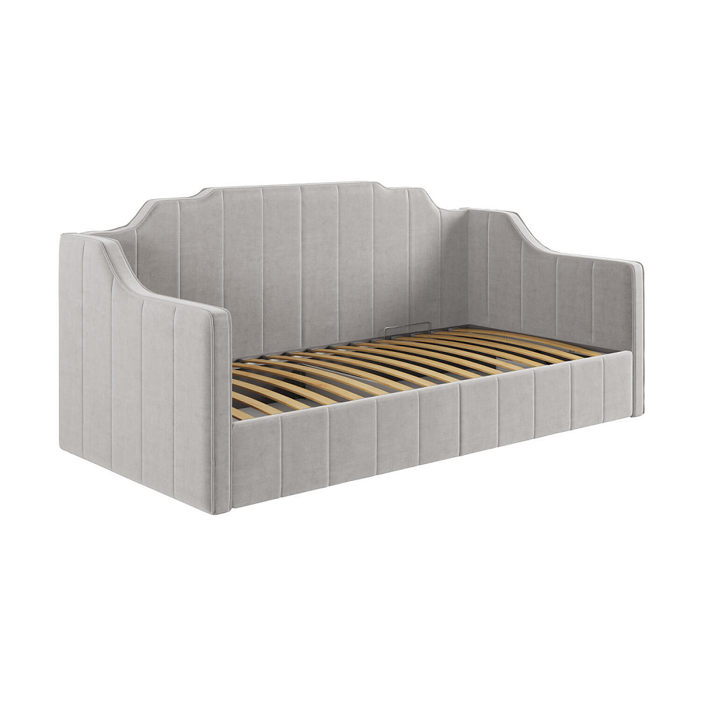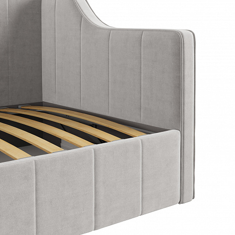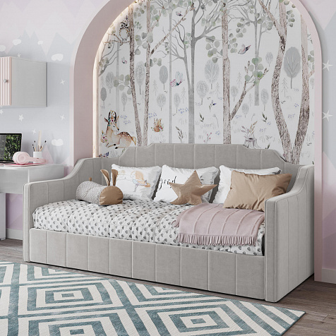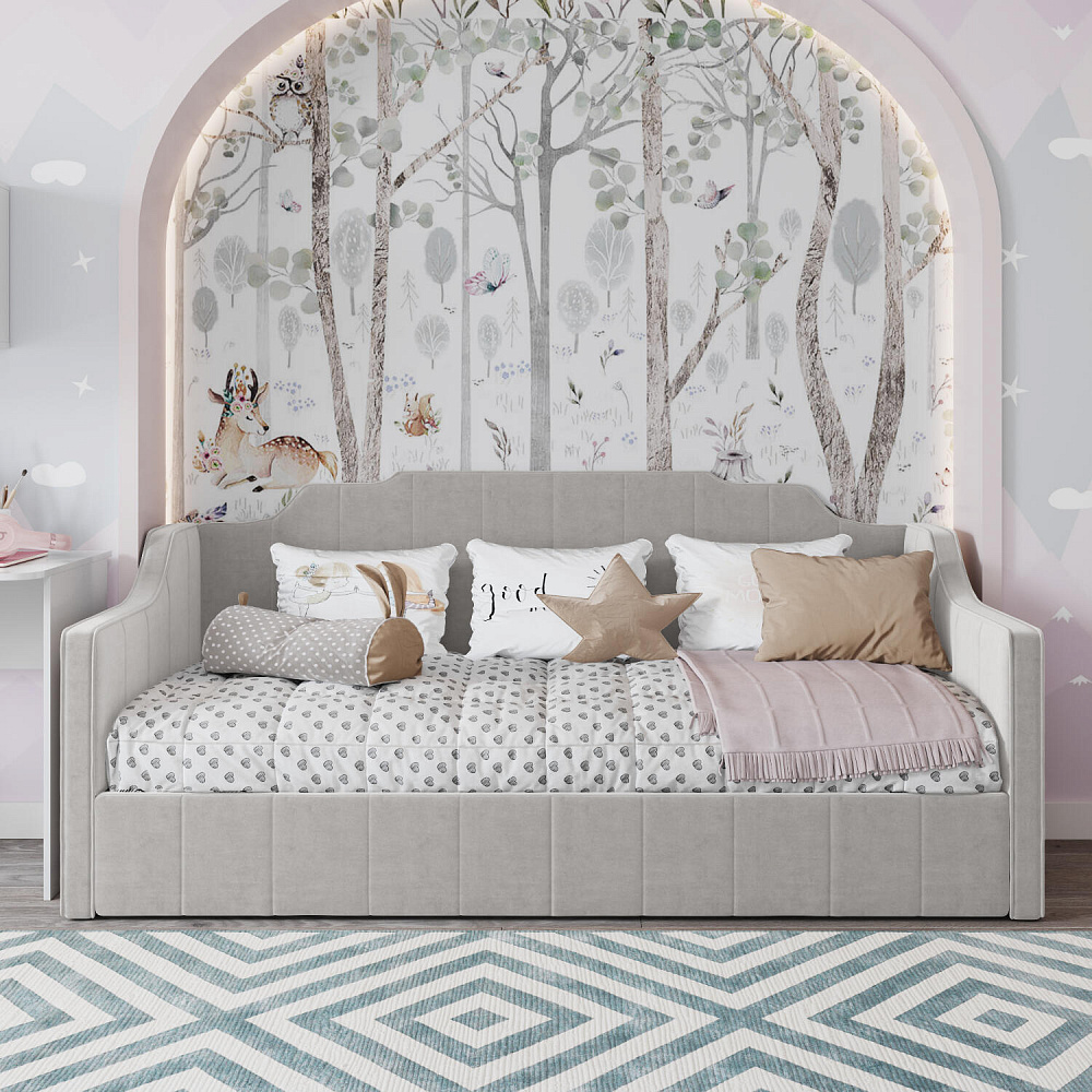 Мягкая кровать «Тэдди», выполненная в обивке из нежного велюра, непременно станет центром детской комнаты. Спинка и боковины оригинальной формы буквально создают два самостоятельных образа: такую модель можно использовать и как кровать, и как диван. Боковые части напоминают диванные подлокотники, на них удобно облокотиться при отдыхе: читать, играть в планшет или смотреть телевизор будет еще комфортнее. Надежное ортопедическое основание создает анатомический эффект, обеспечивая правильную поддержку спины ребёнка во время сна.