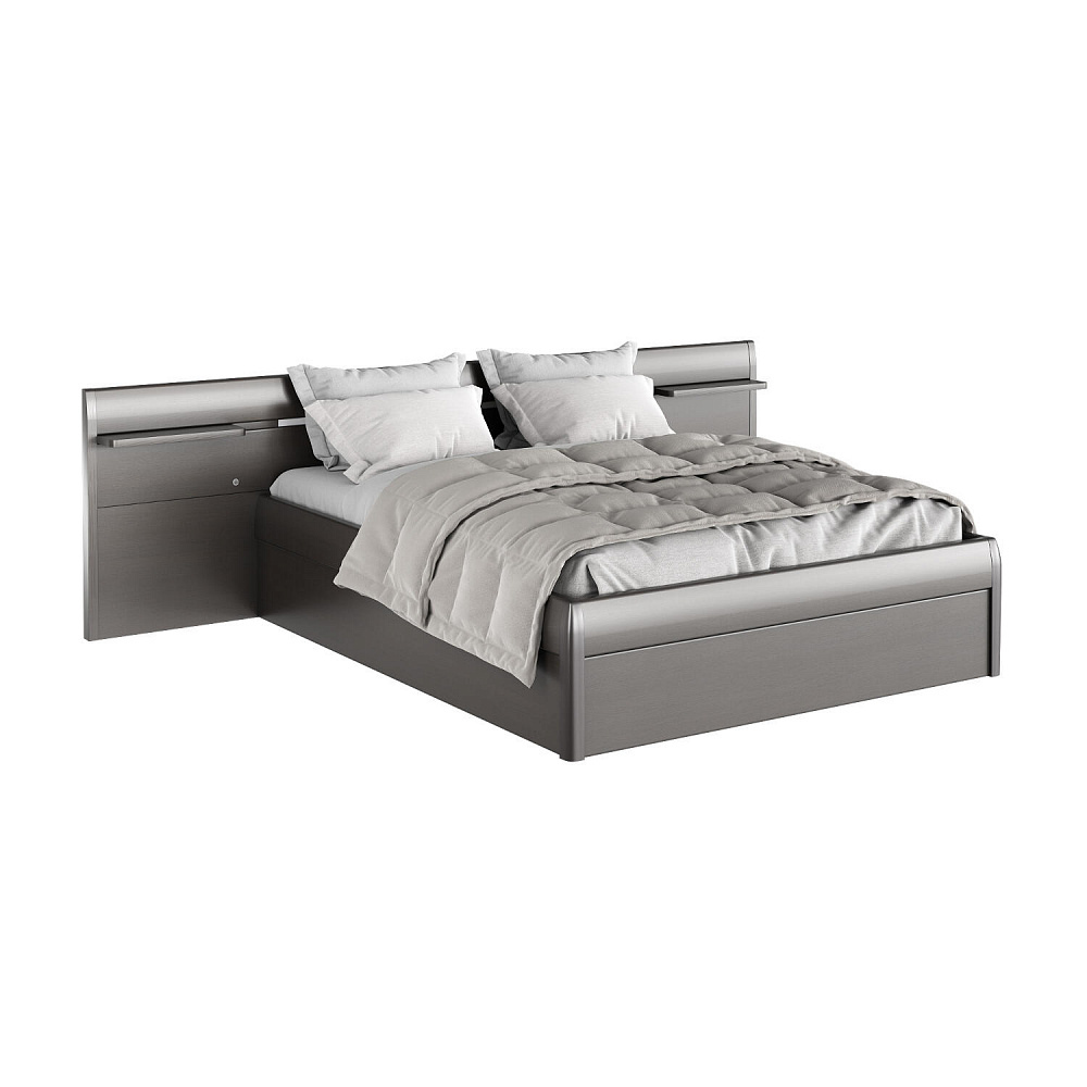 Эффектная двуспальная кровать «Илона» со встроенной мягкой подсветкой в изголовье и удлиненном экраном с полочками. Современный дизайн кровати «Илона» делает ее органичным предметом мебели практически для любого интерьера.