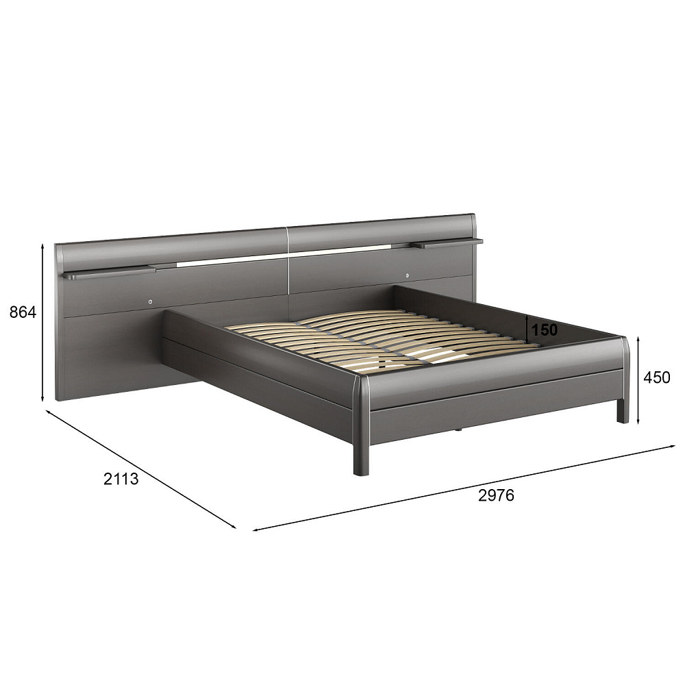 Эффектная двуспальная кровать «Илона» со встроенной мягкой подсветкой в изголовье и удлиненном экраном с полочками. Современный дизайн кровати «Илона» делает ее органичным предметом мебели практически для любого интерьера.