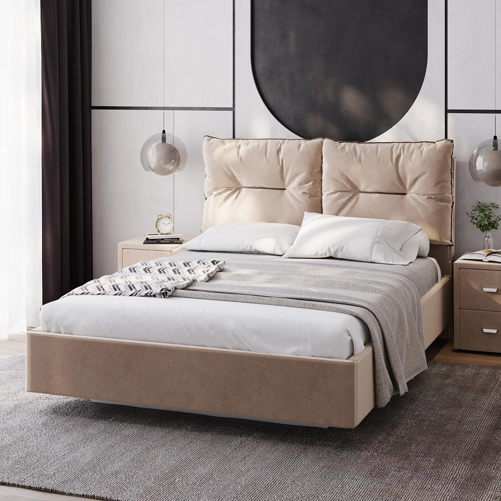 Кровать «Санремо» со съёмными подушками на изголовье — уютнейший вариант оформления спальни. Контрастный кант и внутренний шов придают подушкам дополнительный объем. При необходимости подушки легко снимаются, ведь они крепятся к изголовью на липучках. «Санремо» подарит невероятный комфорт и уют своим владельцам.