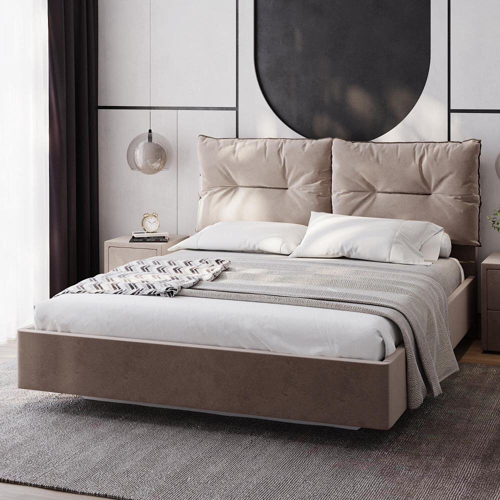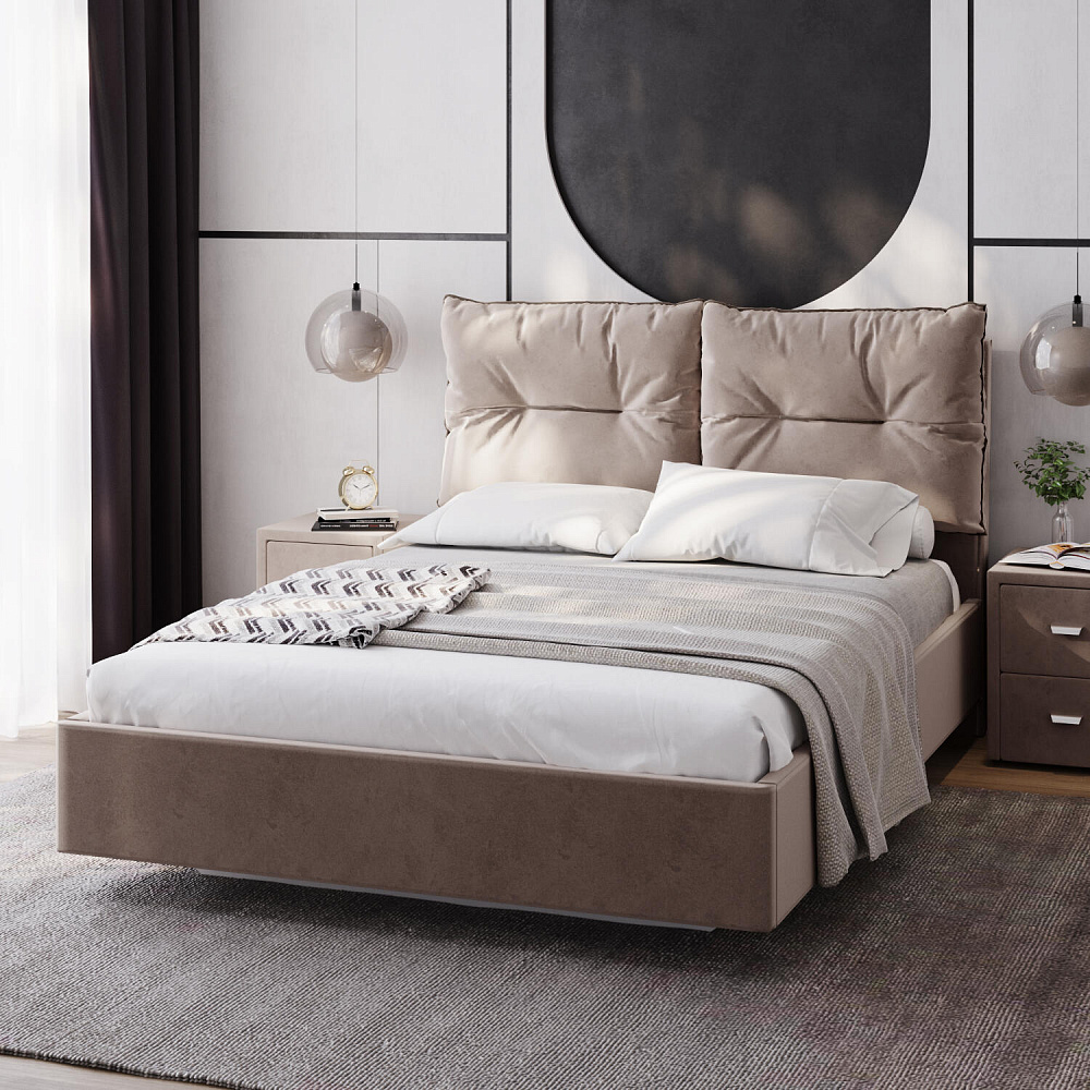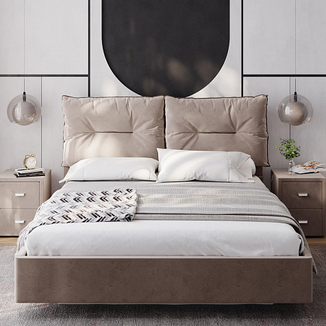 Кровать «Санремо» со съёмными подушками на изголовье — уютнейший вариант оформления спальни. Контрастный кант и внутренний шов придают подушкам дополнительный объем. При необходимости подушки легко снимаются, ведь они крепятся к изголовью на липучках. «Санремо» подарит невероятный комфорт и уют своим владельцам.