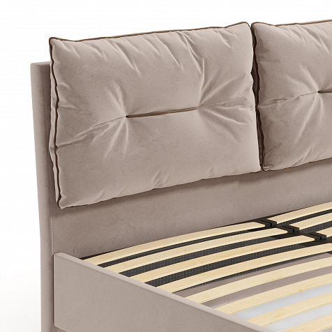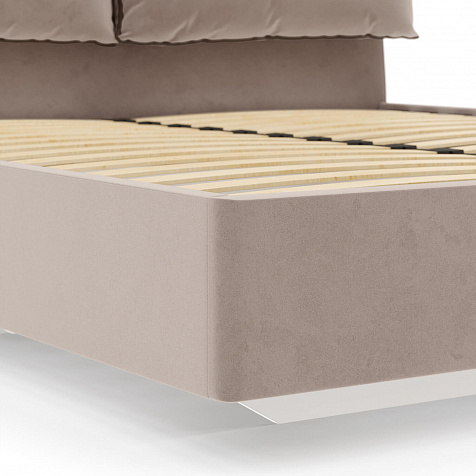 Мягкая обивка. Кровать выполнена в нежнейшем, приятном на ощупь велюре, который обладает высокой механической прочностью.