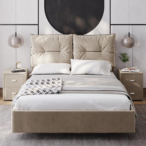 Кровать «Санремо» со съёмными подушками на изголовье — уютнейший вариант оформления спальни. Контрастный кант и внутренний шов придают подушкам дополнительный объем. При необходимости подушки легко снимаются, ведь они крепятся к изголовью на липучках. «Санремо» подарит невероятный комфорт и уют своим владельцам.