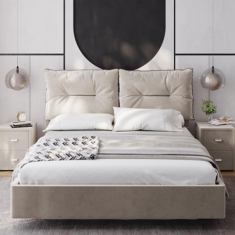 Кровать «Санремо» со съёмными подушками на изголовье — уютнейший вариант оформления спальни. Контрастный кант и внутренний шов придают подушкам дополнительный объем. При необходимости подушки легко снимаются, ведь они крепятся к изголовью на липучках. «Санремо» подарит невероятный комфорт и уют своим владельцам.