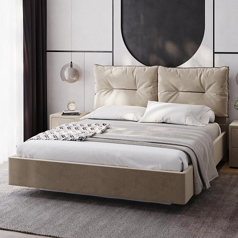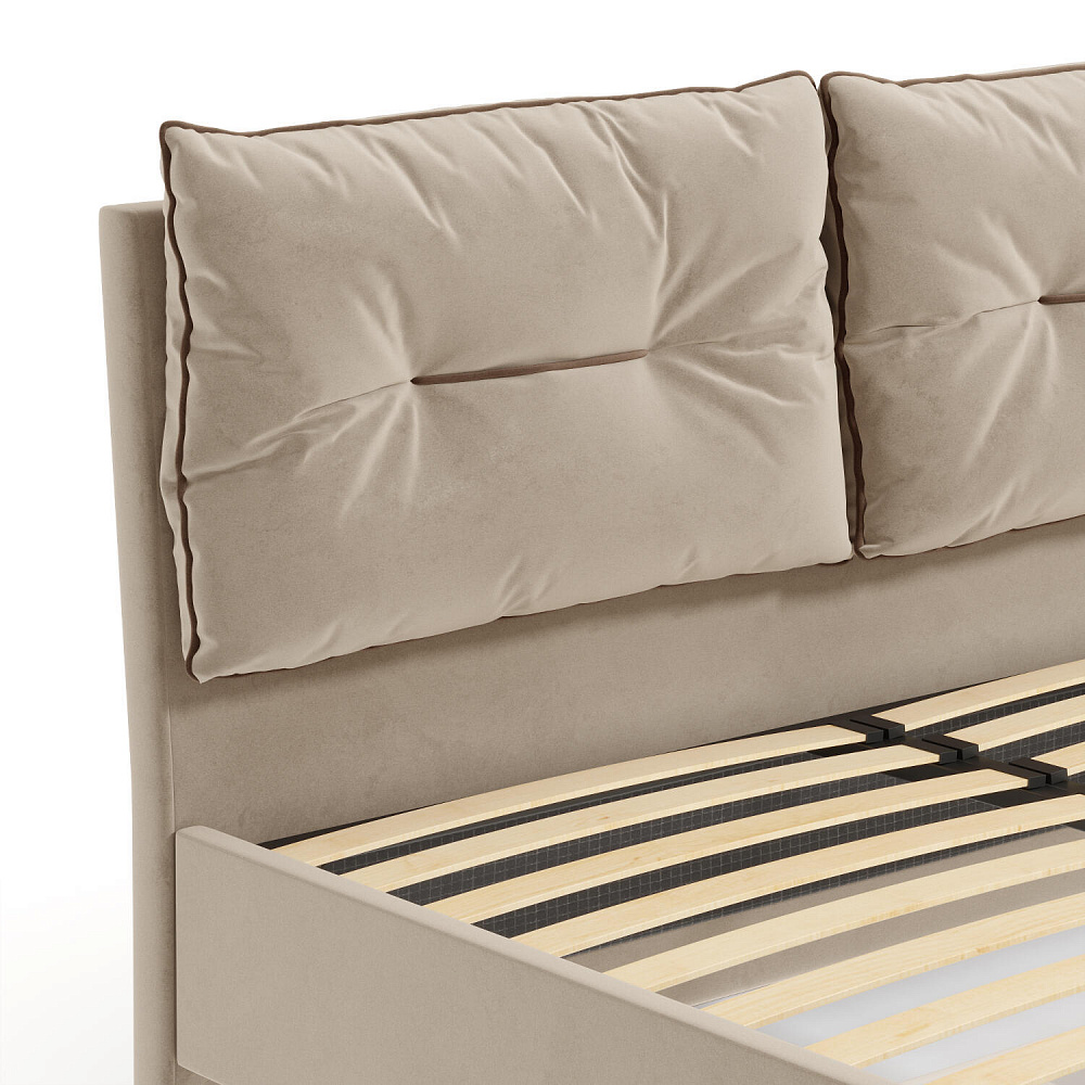 Кровать «Санремо» со съёмными подушками на изголовье — уютнейший вариант оформления спальни. Контрастный кант и внутренний шов придают подушкам дополнительный объем. При необходимости подушки легко снимаются, ведь они крепятся к изголовью на липучках. «Санремо» подарит невероятный комфорт и уют своим владельцам.
