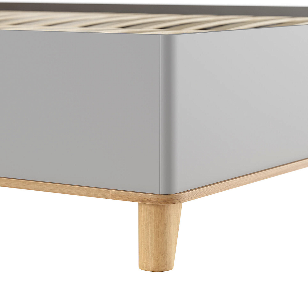 - Высокие ножки. Придают кровати визуальной лёгкости и удобны при уборке пространства под кроватью.