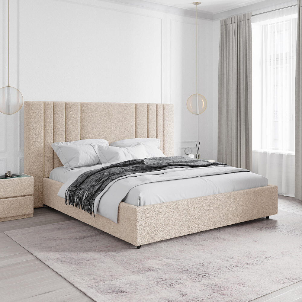 Мягкая кровать «Рания» создана для воплощения смелых интерьерных решений. Высокое изголовье декорировано узором из вертикальных металлизированных вставок, утопающих в изголовье. Под решёткой с подъёмным механизмом предусмотрен вместительный бельевой короб. Надежное основание и правильно подобранный матрас обеспечат необходимый уровень для здорового сна и отдыха.