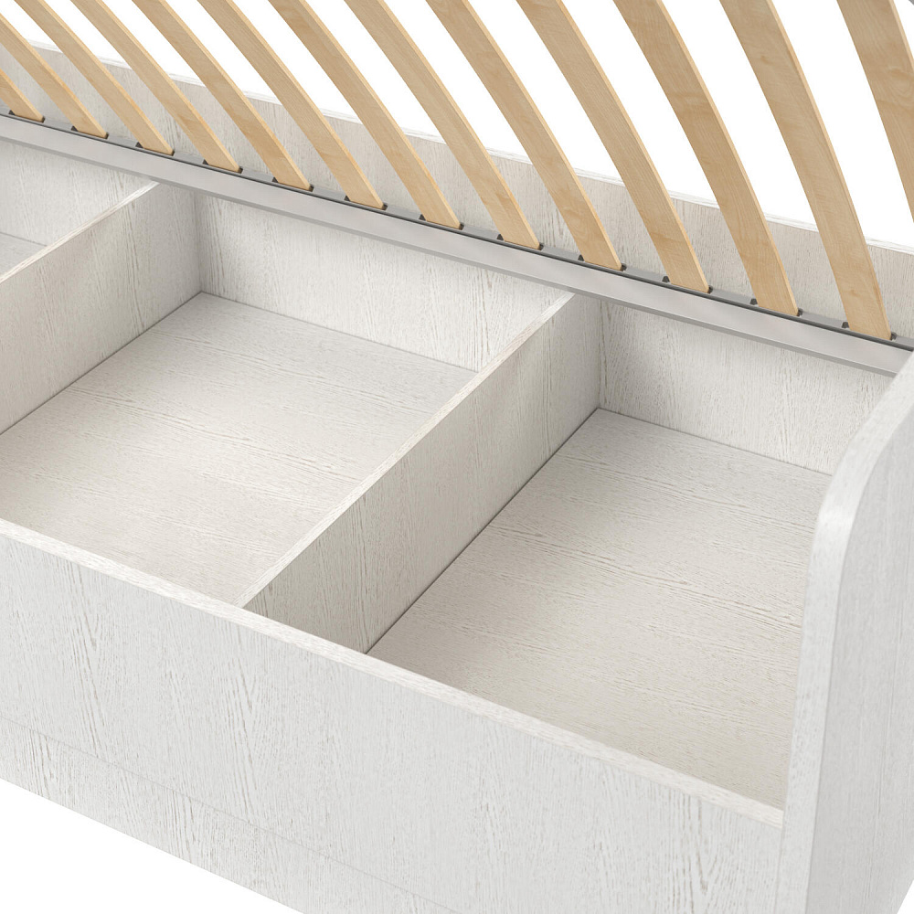 Короб для хранения белья. Под решёткой предусмотрена ниша, разделённая на три части, в которой можно разместить постельные принадлежности, пледы или игрушки.
