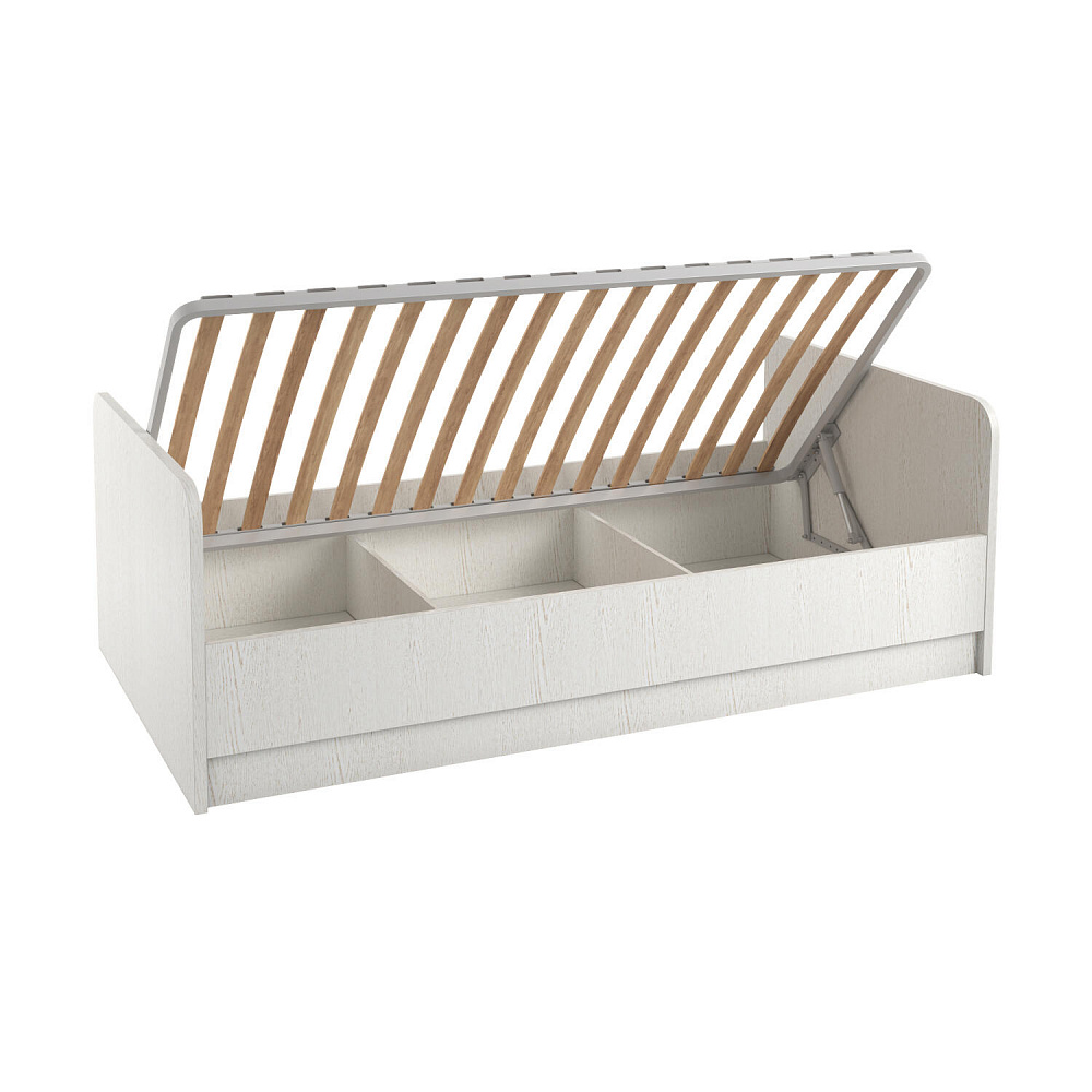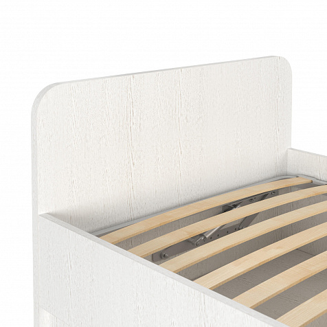 Кровать «Тиана» в спокойной белой цветовой гамме подойдёт любому современному интерьеру детской как девочки, так и мальчика. Надёжное основание и правильно подобранный матрас обеспечат комфортный отдых и здоровый сон. Под решёткой с подъёмным механизмом предусмотрено место для храниения постельных принадлежностей и прочих вещей.