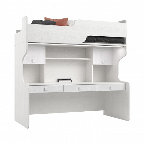 Диодный светильник и блок розеток. В комплект модуля входит диодный светильник с сенсорными выключателем, который крепится к дну спального места и даёт мягкий свет над рабочим столом. Для подключения светильника в комплекте к кровати предусмотрен блок розеток с USB-разъёмами.