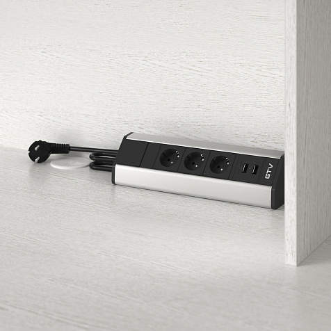 Блок электрических розеток: блок из трех розеток 220V и двумя USB-разъемами, устанавливается на столешницу с креплением шурупами.