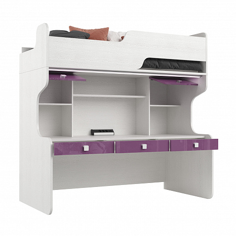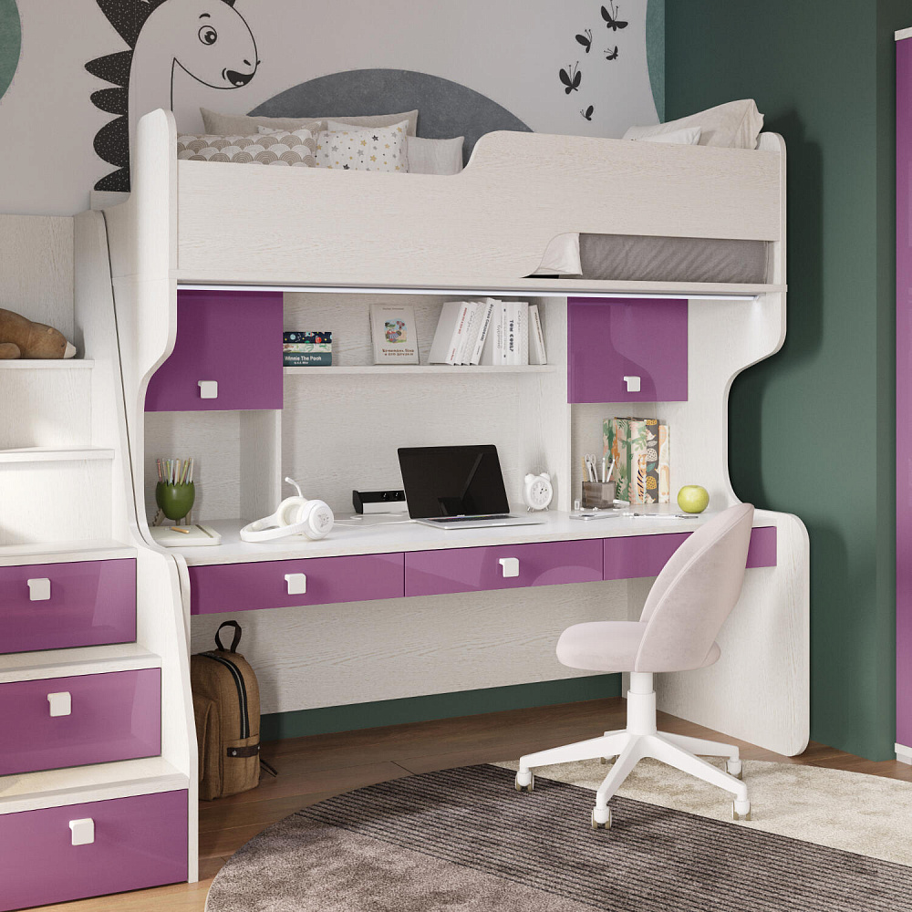 Кровать-чердак «Тиана» — продуманная модель с рабочим столом, удобной системой хранения, диодным светильником и блоком розеток в комплекте. Функциональная кровать понравится как детям, так и их родителям — она значительно экономит место в комнате для игр и активных занятий.