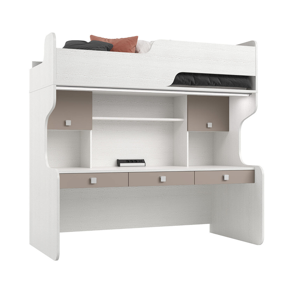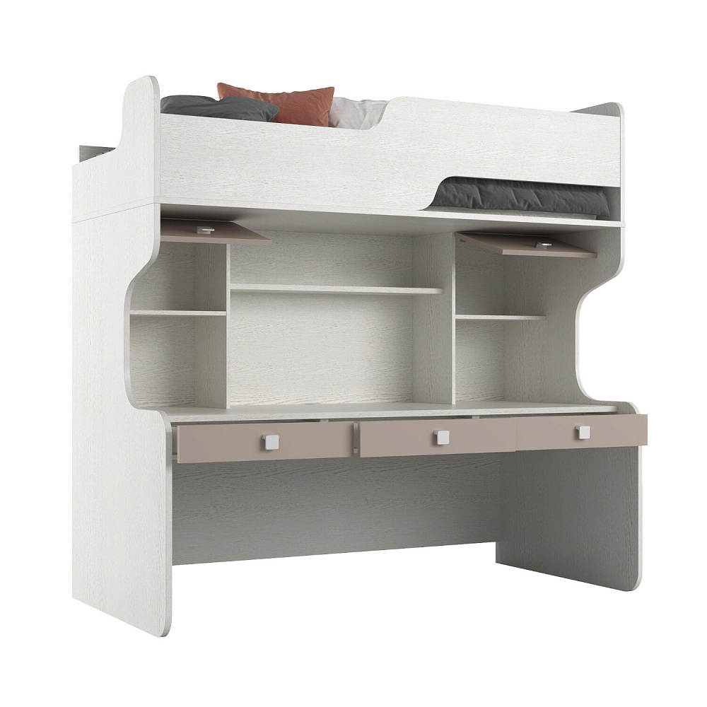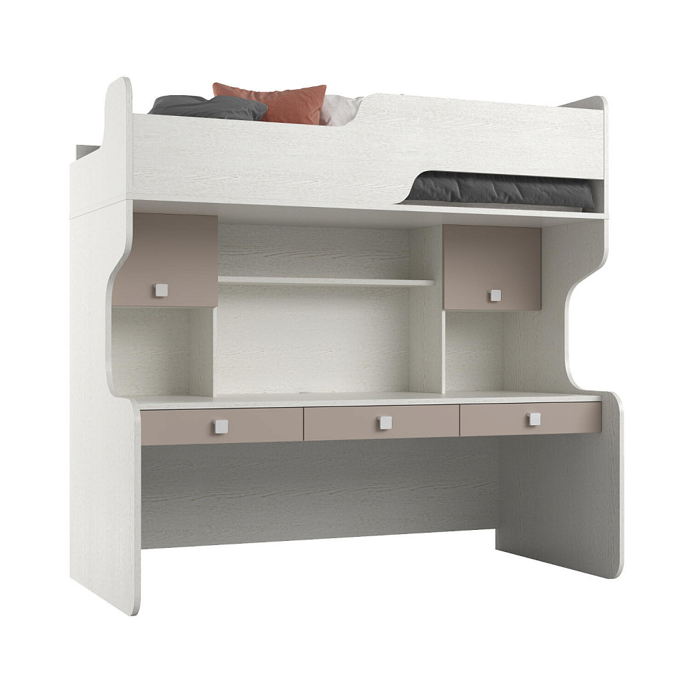 Кровать-чердак «Тиана» с рабочим столом и удобной системой хранения учебных принадлежностей понравится как детям, так и их родителям. Функциональный модуль значительно освободит место в комнате для игр и активных занятий.