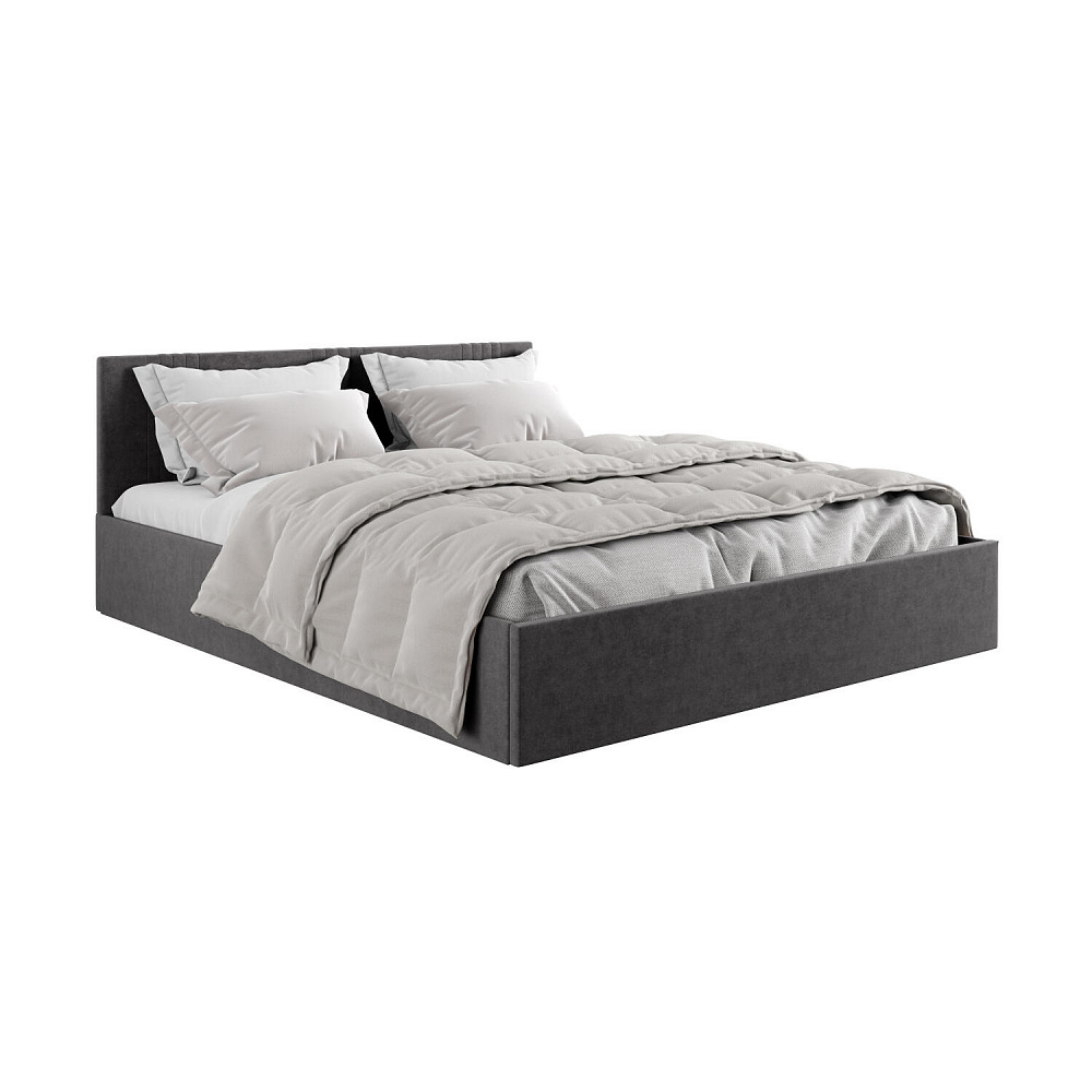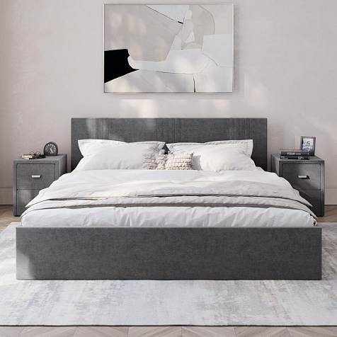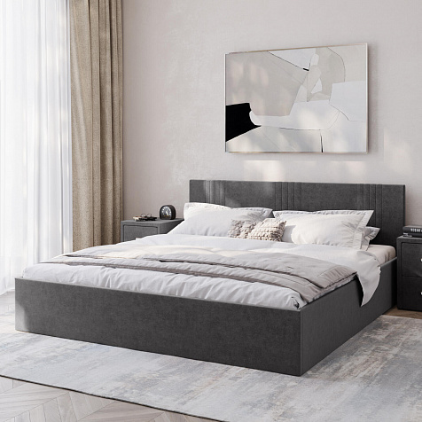 Кровать «Элис» выполнена в мягкой обивке из практичного и износостойкого велюра. Прямая спинка украшена декоративной стежкой, добавляющей стиля и динамики в интерьер. Просторный бельевой короб станет удобным местом для хранения вещей и освободит место в шкафу. Надёжное основание и анатомическая решётка на подъёмных газлифтах обеспечат оптимальный уровень комфорта во время сна.