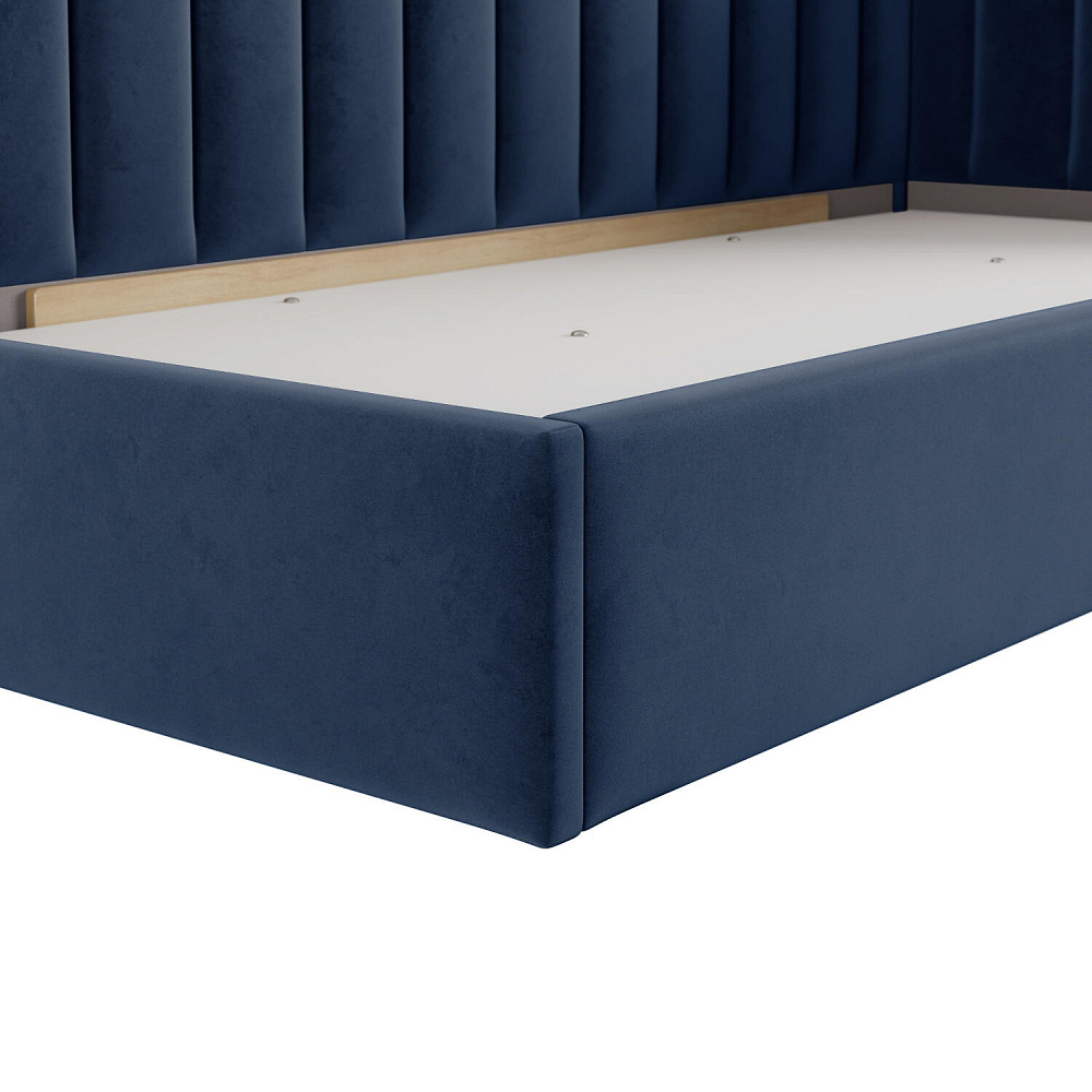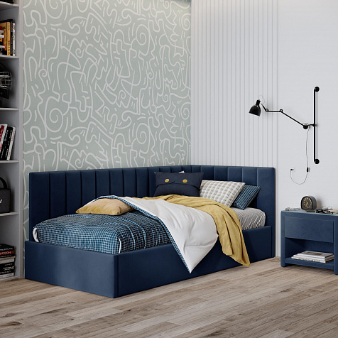 Односпальная кровать «Трино» — сочетание уюта и комфорта в современном дизайне. Спинка Г-образной формы в мягком велюре украшена декоративной вертикальной стежкой, что станет акцентом в интерьере подростковой комнаты.