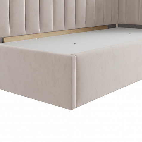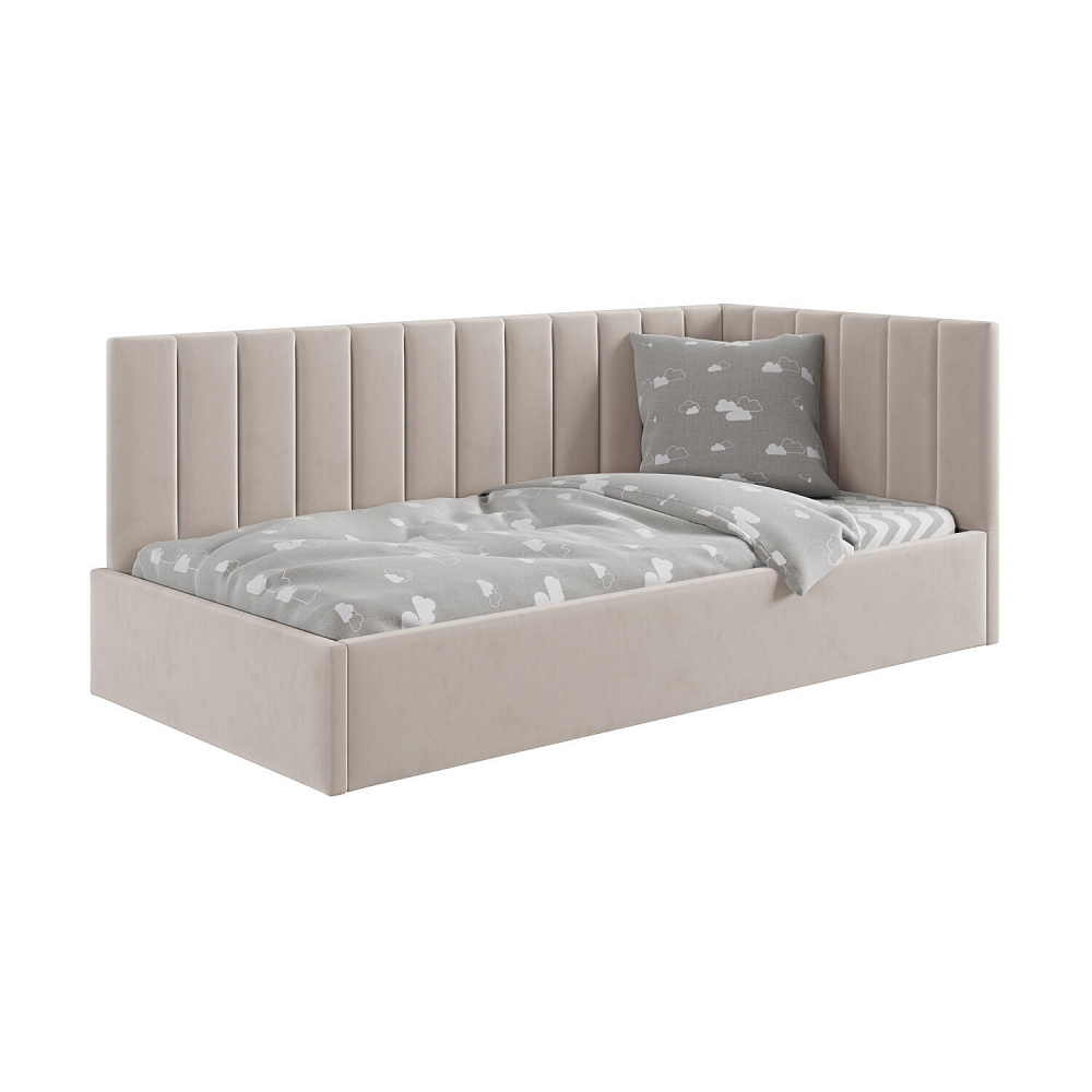 Односпальная кровать «Трино» — сочетание уюта и комфорта в современном дизайне. Спинка Г-образной формы в мягком велюре украшена декоративной вертикальной стежкой, что станет акцентом в интерьере подростковой комнаты.