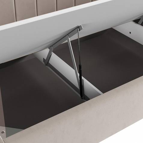 - Удобный доступ к коробу. Механизм легко поднимает и опускает основание кровати вместе с матрасом благодаря газлифтам.
