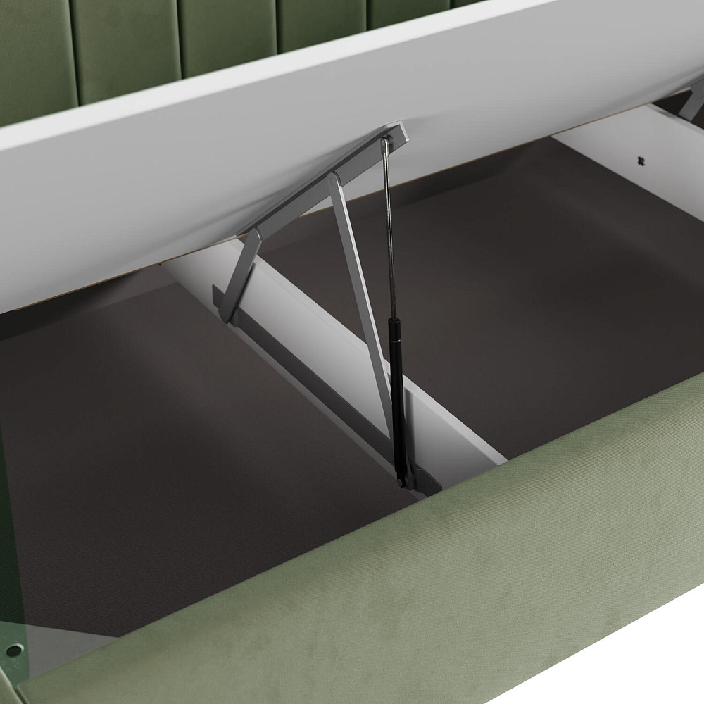 - Удобный доступ к коробу. Механизм легко поднимает и опускает основание кровати вместе с матрасом благодаря газлифтам.