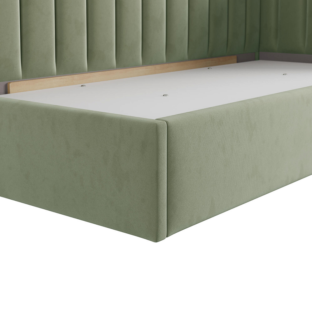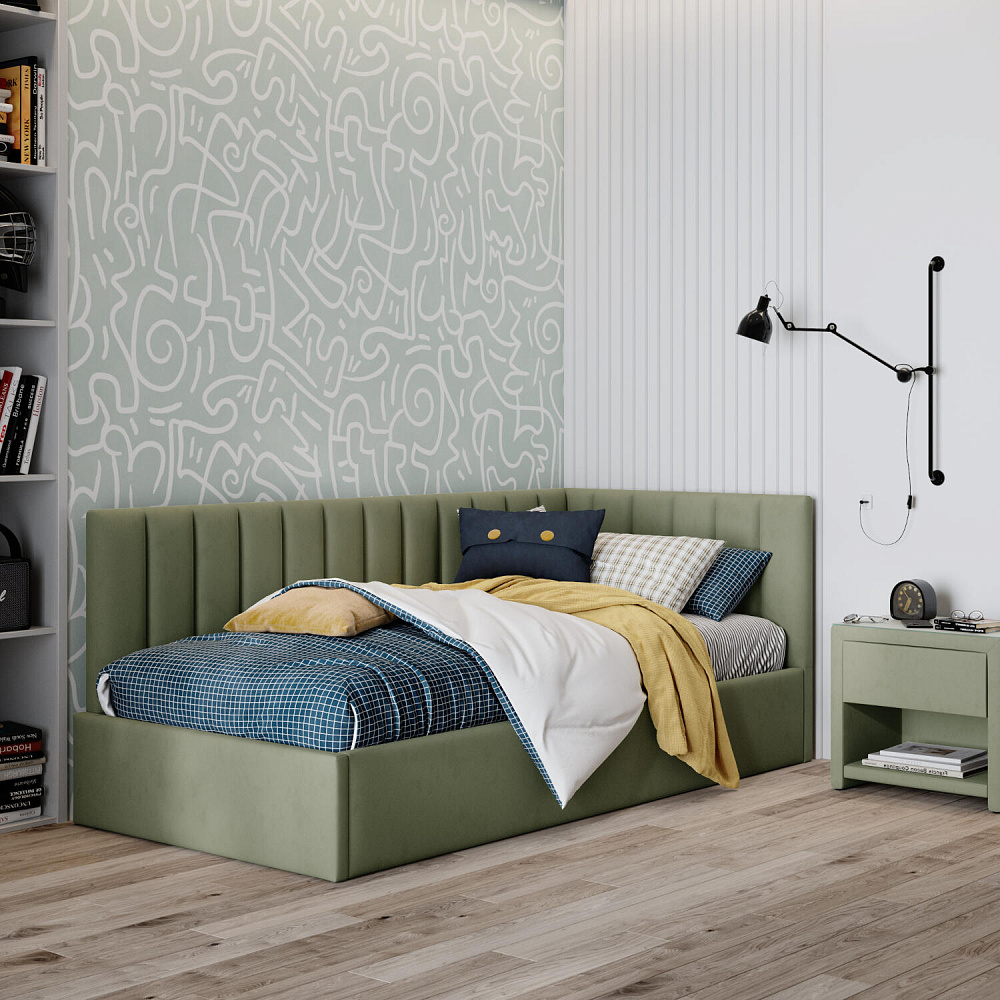 Односпальная кровать «Трино» — сочетание уюта и комфорта в современном дизайне. Спинка Г-образной формы в мягком велюре украшена декоративной вертикальной стежкой, что станет акцентом в интерьере подростковой комнаты.