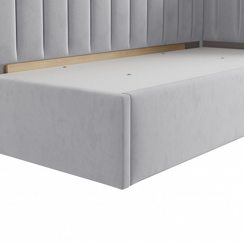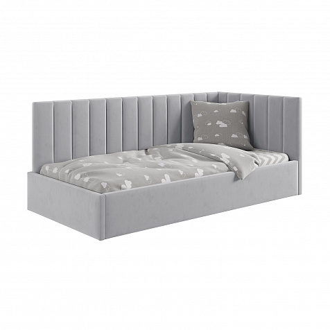 Односпальная кровать «Трино» — сочетание уюта и комфорта в современном дизайне. Спинка Г-образной формы в мягком велюре украшена декоративной вертикальной стежкой, что станет акцентом в интерьере подростковой комнаты.