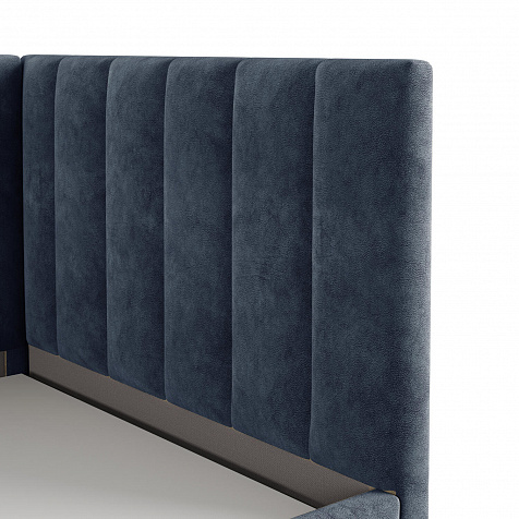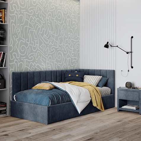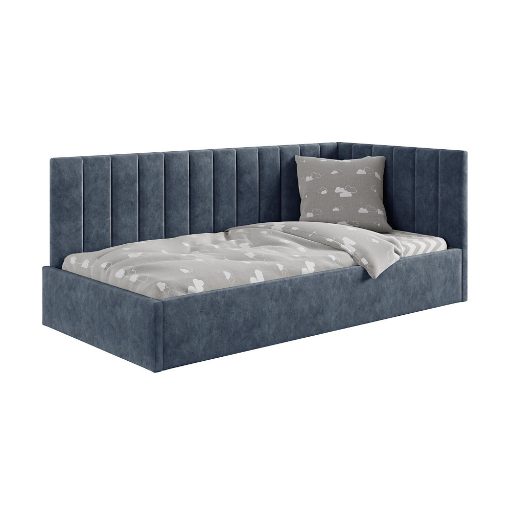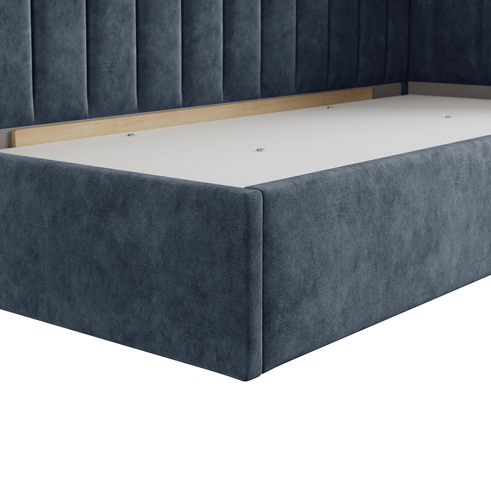 Односпальная кровать «Трино» — сочетание уюта и комфорта в современном дизайне. Спинка Г-образной формы в мягком велюре украшена декоративной вертикальной стежкой, что станет акцентом в интерьере подростковой комнаты.