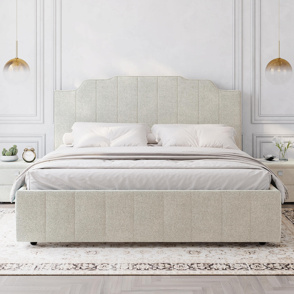 Обивка из ткани букле. Мягкая, приятная на ощупь ткань, сотканная из мелких завитков, отличается высокой прочностью и устойчивостью к истиранию и выцветанию. Обивка не подвержена растягиванию, не лоснится, не образует катышков, долговечна и не требовательна в уходе.