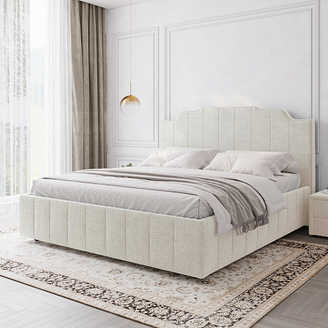 Мягкая кровать «Мадлен» в обивке из велюра дополнит интерьер спальни в современном стиле. Дизайн модели отличается высоким фигурным изголовьем с вертикальными строчками. Ортопедическое основание с удобным механизмом подъёма и вместительный бельевой короб порадуют своего обладателя.