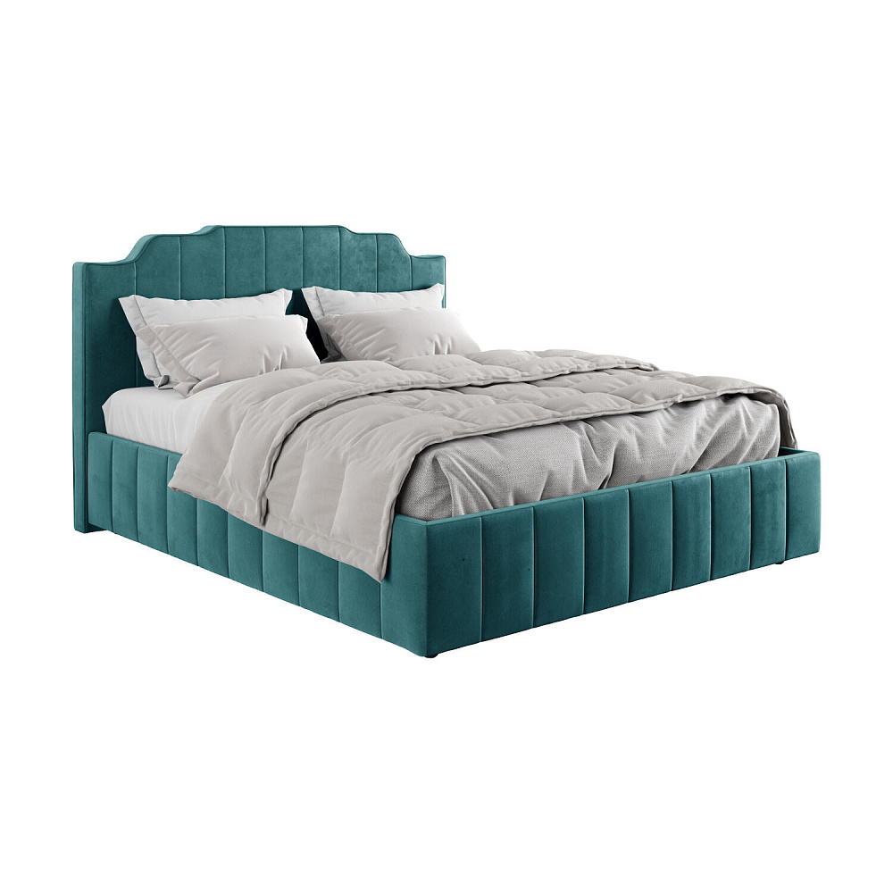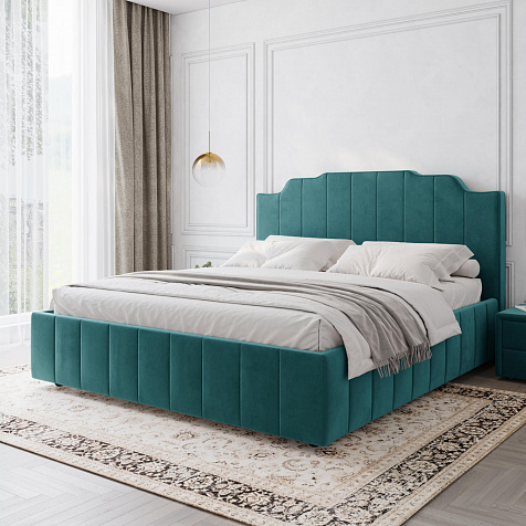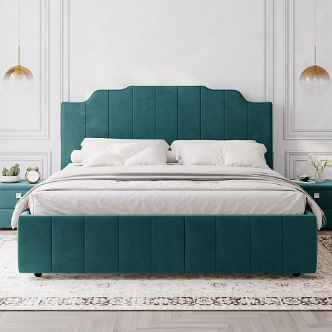 Мягкая кровать «Мадлен» в обивке из велюра дополнит интерьер спальни в современном стиле. Дизайн модели отличается высоким фигурным изголовьем с вертикальными строчками. Ортопедическое основание с удобным механизмом подъёма и вместительный бельевой короб порадуют своего обладателя.