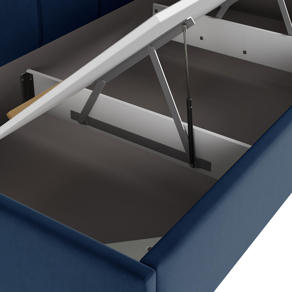 - Удобный доступ к коробу. Подъёмный механизм легко поднимает и опускает основание кровати вместе с матрасом.