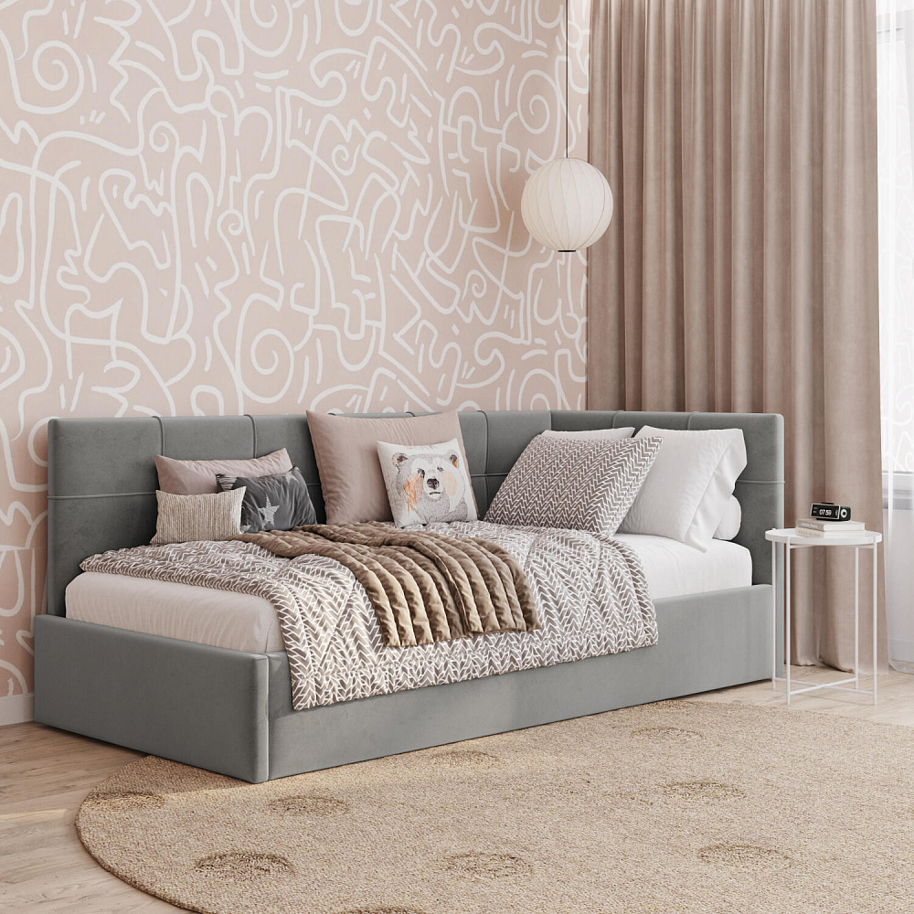 Односпальная кровать «Мидо» — сочетание уюта и комфорта в современном дизайне. Спинка Г-образной формы в мягком велюре украшена декоративной стежкой в виде прямоугольников, что станет акцентом в интерьере подростковой комнаты.