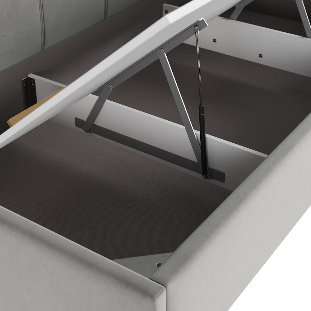 - Удобный доступ к коробу. Подъёмный механизм легко поднимает и опускает основание кровати вместе с матрасом.