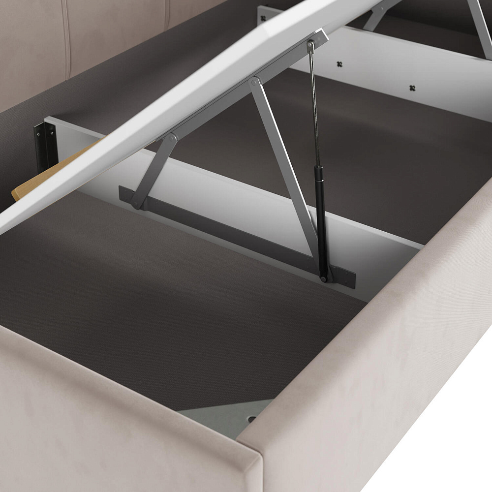 - Удобный доступ к коробу. Подъёмный механизм легко поднимает и опускает основание кровати вместе с матрасом.
