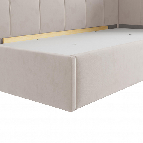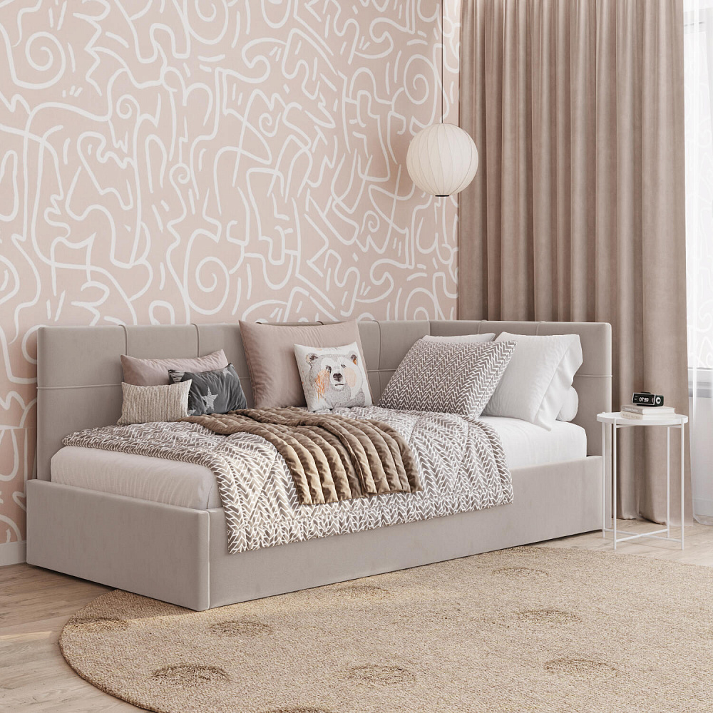 Односпальная кровать «Мидо» — сочетание уюта и комфорта в современном дизайне. Спинка Г-образной формы в мягком велюре украшена декоративной стежкой в виде прямоугольников, что станет акцентом в интерьере подростковой комнаты.