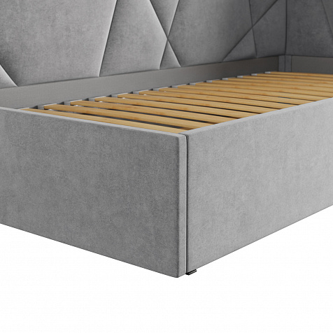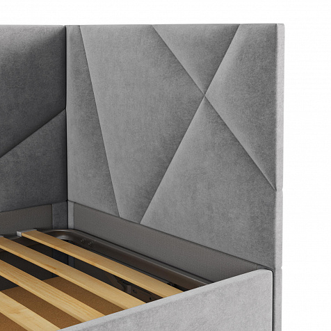 - Универсальная сборка. Боковая спинка выполнена полностью в обивочной ткани и может устанавливаться как справа, так и слева.