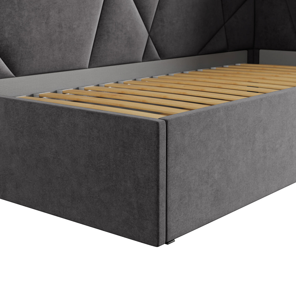 Односпальная кровать «Остин» станет частью уютного и современного интерьера детской комнаты, а также сделает сон комфортным. Спинки украшены аккуратной герметичной строчкой, мягкая обивка смягчает царги и углы кровати, делая их более безопасными для детей. Кровать поможет сэкономить пространство комнаты благодаря просторному бельевому коробу под решёткой.