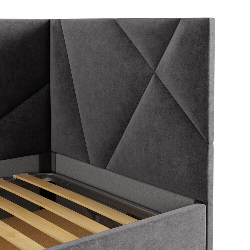 - Универсальная сборка. Боковая спинка выполнена полностью в обивочной ткани и может устанавливаться как справа, так и слева.