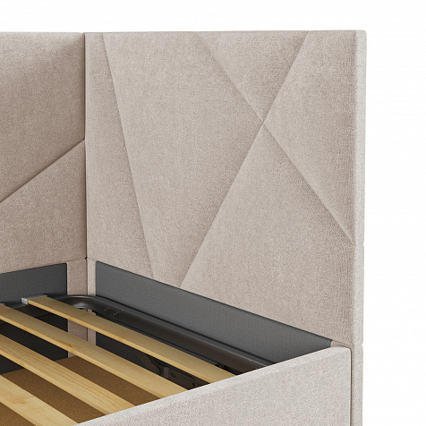 - Универсальная сборка. Боковая спинка выполнена полностью в обивочной ткани и может устанавливаться как справа, так и слева.