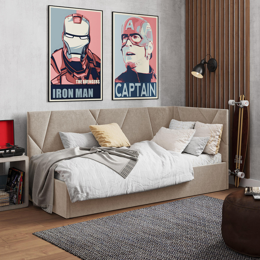 Односпальная кровать «Остин» станет частью уютного и современного интерьера детской комнаты, а также сделает сон комфортным. Спинки украшены аккуратной герметичной строчкой, мягкая обивка смягчает царги и углы кровати, делая их более безопасными для детей. Кровать поможет сэкономить пространство комнаты благодаря просторному бельевому коробу под решёткой.