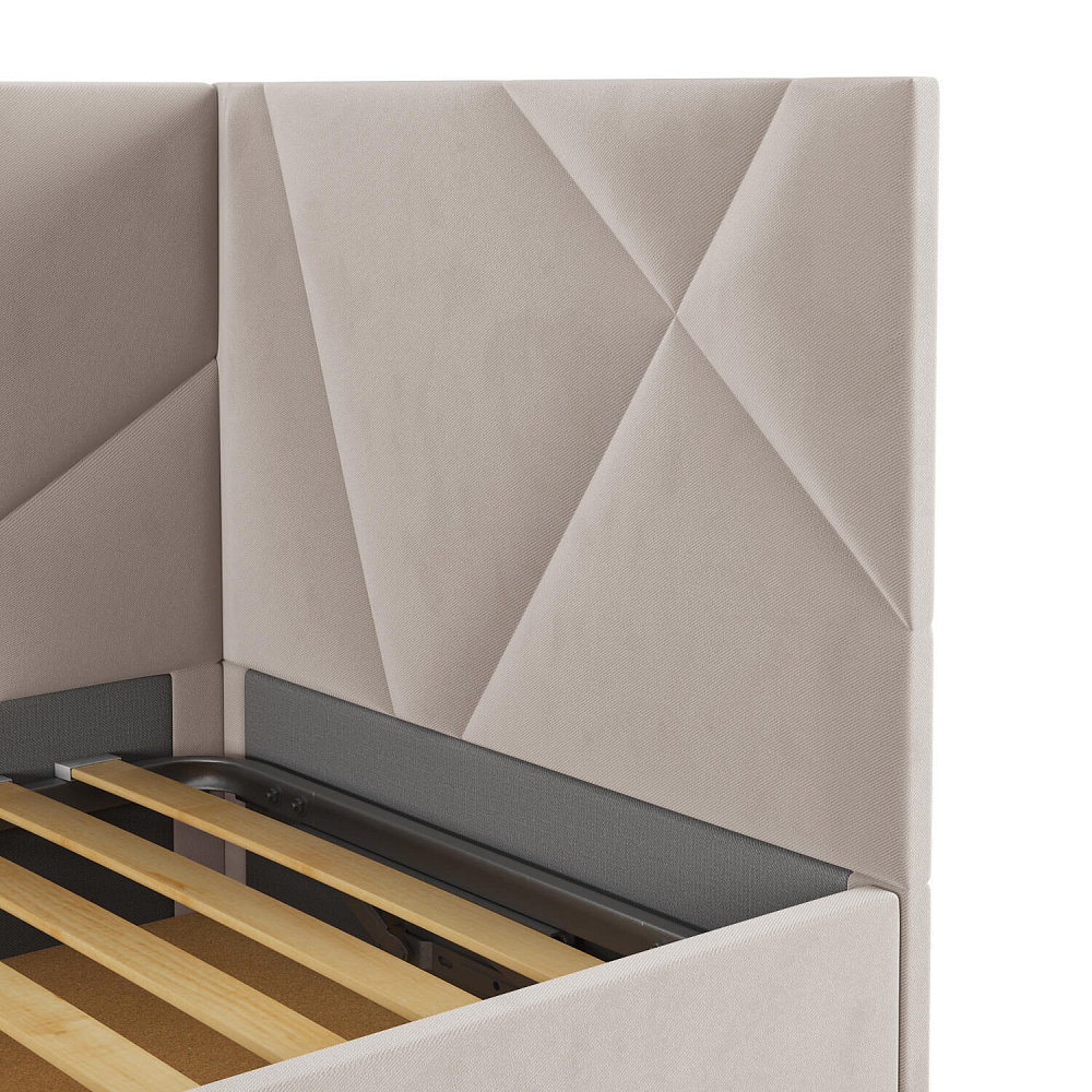 - Универсальная сборка. Боковая спинка выполнена полностью в обивочной ткани и может устанавливаться как справа, так и слева.