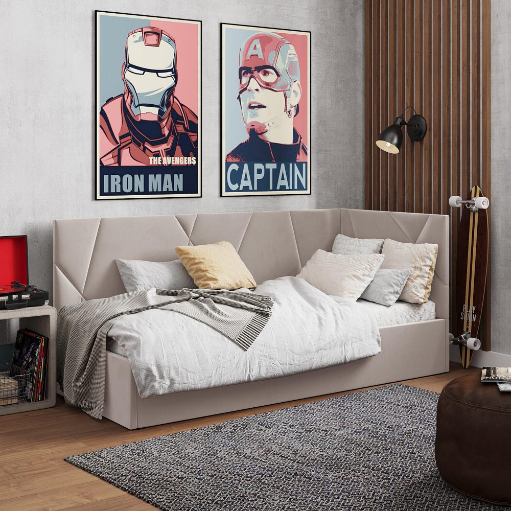 Односпальная кровать «Остин» станет частью уютного и современного интерьера детской комнаты, а также сделает сон комфортным. Спинки украшены аккуратной герметичной строчкой, мягкая обивка смягчает царги и углы кровати, делая их более безопасными для детей. Кровать поможет сэкономить пространство комнаты благодаря просторному бельевому коробу под решёткой.