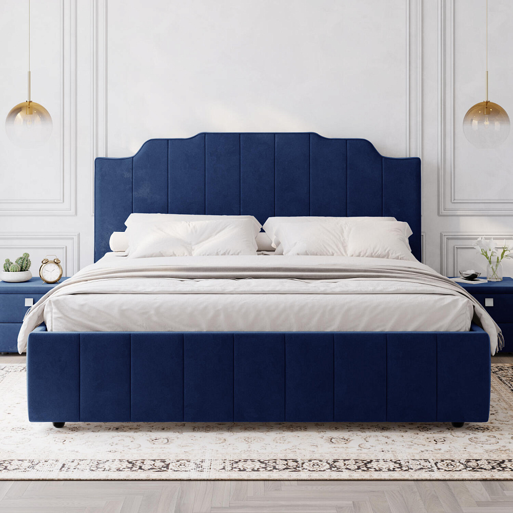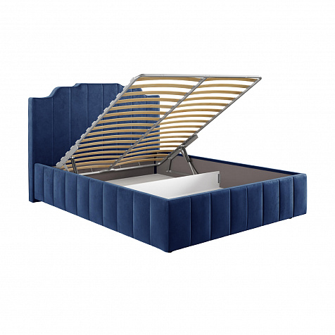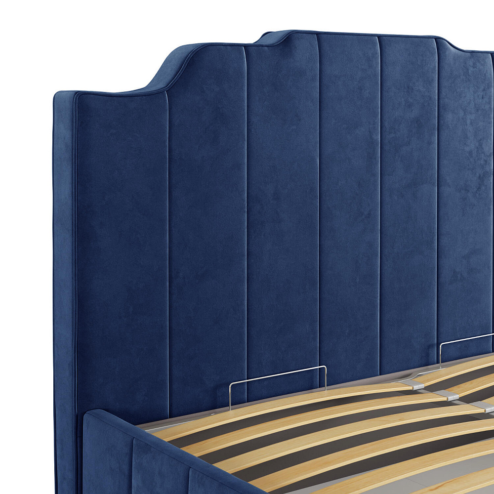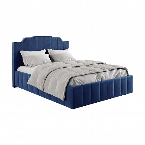 Мягкая кровать «Мадлен» в обивке из велюра дополнит интерьер спальни в современном стиле. Дизайн модели отличается высоким фигурным изголовьем с вертикальными строчками. Ортопедическое основание с удобным механизмом подъёма и вместительный бельевой короб порадуют своего обладателя.