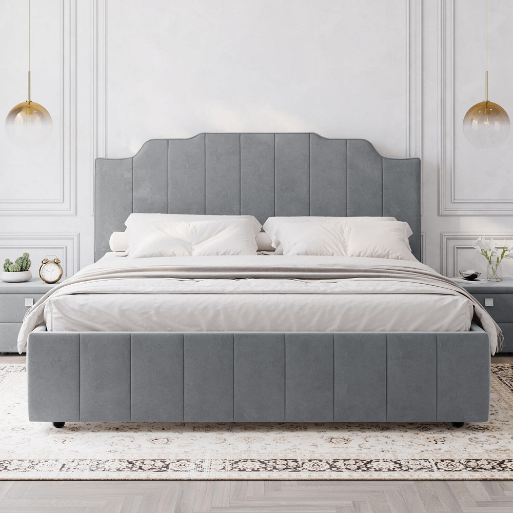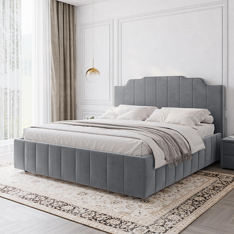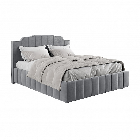Мягкая кровать «Мадлен» в обивке из велюра дополнит интерьер спальни в современном стиле. Дизайн модели отличается высоким фигурным изголовьем с вертикальными строчками. Ортопедическое основание с удобным механизмом подъёма и вместительный бельевой короб порадуют своего обладателя.
