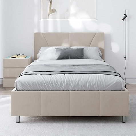 Обивка из велюра. Плотная и приятная на ощупь ткань устойчива к влаге и имеет необычную текстуру. Тонкие фактурные диагональные линии смотрятся эффектно. Смягчают привычные геометрические акценты.