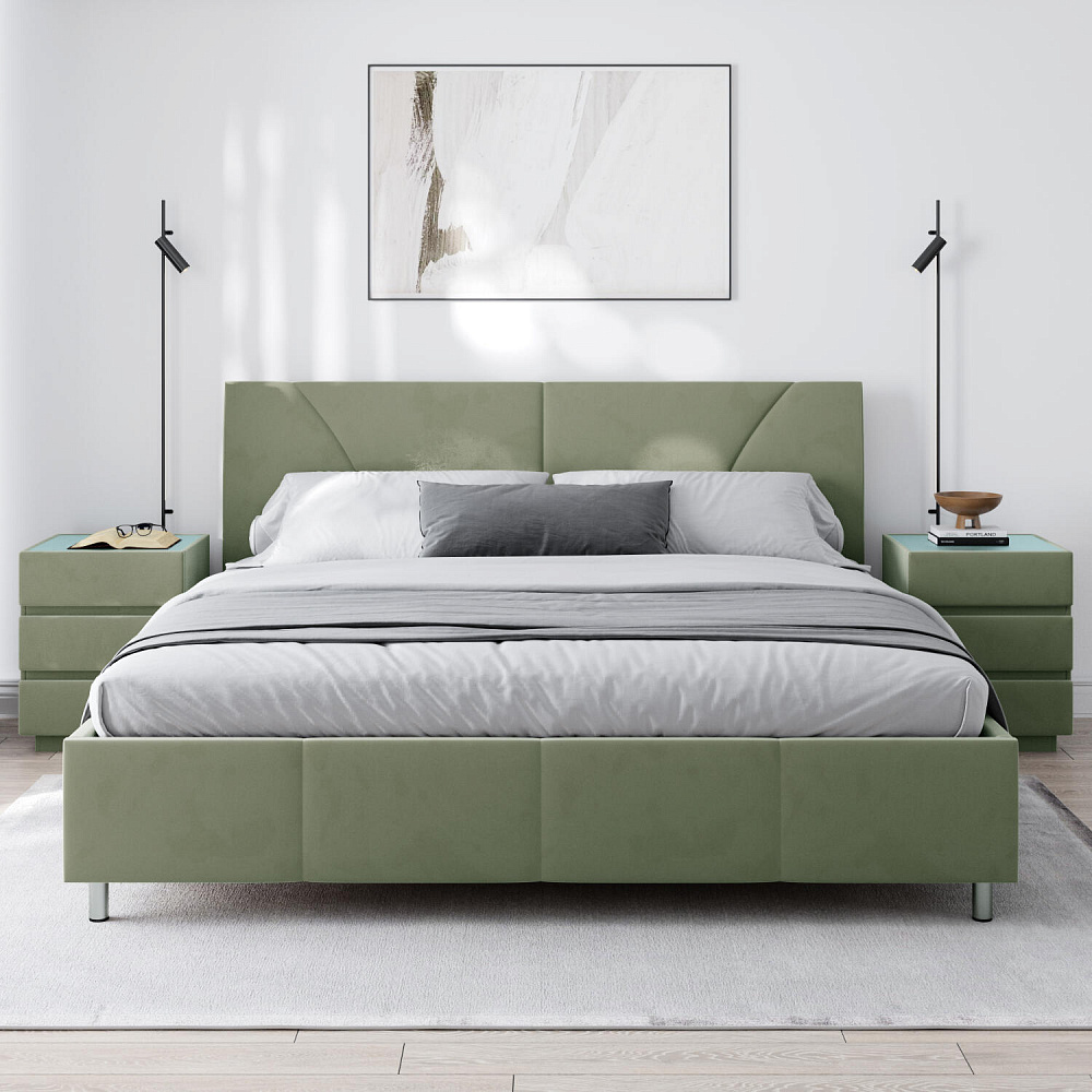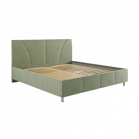Мягкая кровать «Каролина» для тех, кому важен здоровый сон и эстетичный вид мебели. Дизайн отличается диагональными и прямыми строчками и слегка изогнутым изголовьем. Возвышение на ножках добавит в интерьер динамики и лёгкости. Кровать также поможет сэкономить пространство квартиры благодаря вместительному бельевому коробу под решёткой.