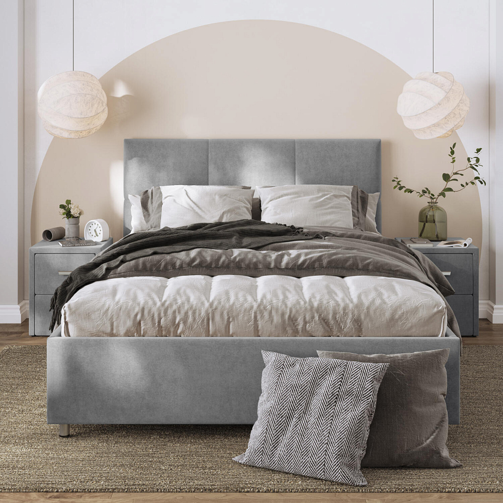 Кровать «Альба» — гармоничное сочетание стильного дизайна и комфорта. Мягкое изголовье с декором в виде прямоугольной строчки выглядит эффектно и создаёт ощущение уюта. Модель также поможет сэкономить пространство спальни благодаря вместительному бельевому коробу под решёткой.