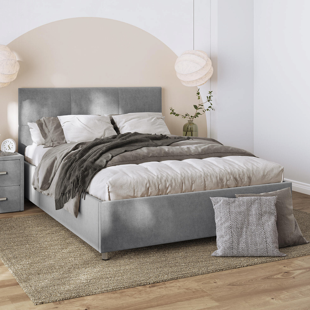 Кровать «Альба» — гармоничное сочетание стильного дизайна и комфорта. Мягкое изголовье с декором в виде прямоугольной строчки выглядит эффектно и создаёт ощущение уюта. Модель также поможет сэкономить пространство спальни благодаря вместительному бельевому коробу под решёткой.