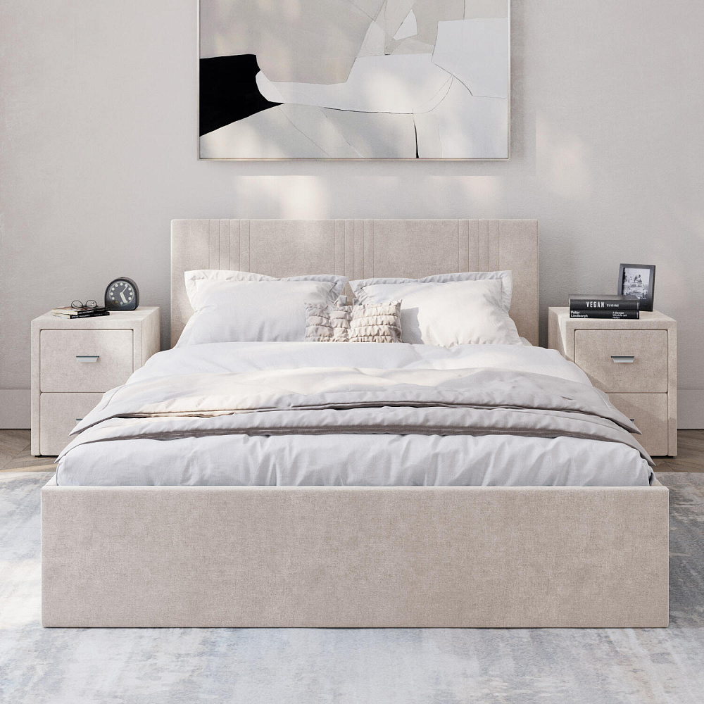 Кровать «Элис» выполнена в мягкой обивке из практичного и износостойкого велюра. Прямая спинка украшена декоративной стежкой, добавляющей стиля и динамики в интерьер. Просторный бельевой короб станет удобным местом для хранения вещей и освободит место в шкафу. Надёжное основание и анатомическая решётка на подъёмных газлифтах обеспечат оптимальный уровень комфорта во время сна.
