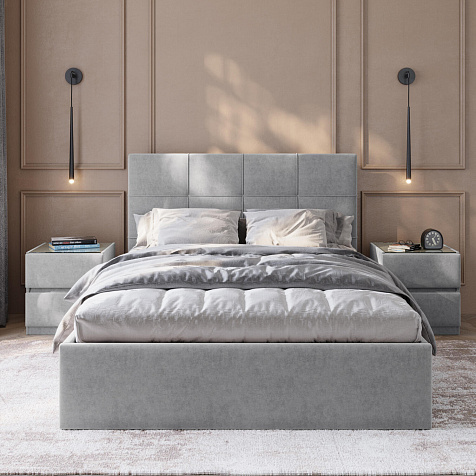 Кровать «Мальва» — универсальная модель в минималистическом стиле с геометрической стёжкой. Строгий и изящный дизайн модели станет ярким элементом в интерьере вашей спальни. Благодаря просвету под боковыми царгами будет удобно подходить и заправлять кровать.