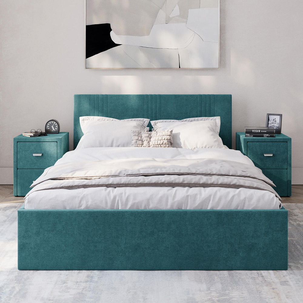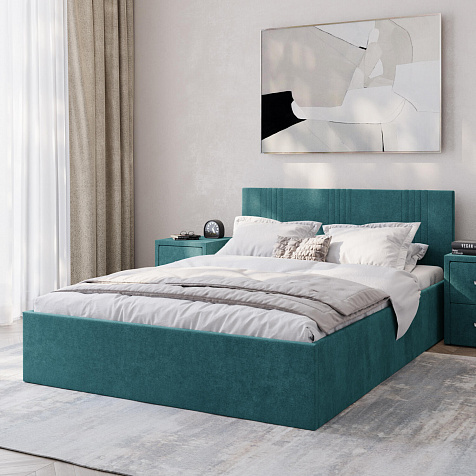 Кровать «Элис» выполнена в мягкой обивке из практичного и износостойкого велюра. Прямая спинка украшена декоративной стежкой, добавляющей стиля и динамики в интерьер. Просторный бельевой короб станет удобным местом для хранения вещей и освободит место в шкафу. Надёжное основание и анатомическая решётка на подъёмных газлифтах обеспечат оптимальный уровень комфорта во время сна.