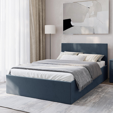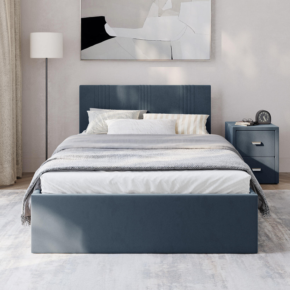 Кровать «Элис» выполнена в мягкой обивке из практичного и износостойкого велюра. Прямая спинка украшена декоративной стежкой, добавляющей стиля и динамики в интерьер. Просторный бельевой короб станет удобным местом для хранения вещей и освободит место в шкафу. Надёжное основание и анатомическая решётка на подъёмных газлифтах обеспечат оптимальный уровень комфорта во время сна.
